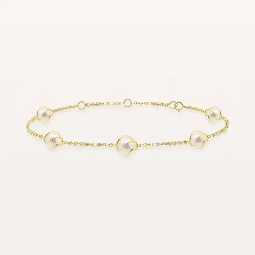 Bracelet chaîne en or avec perles habillées d’un motif torsadé