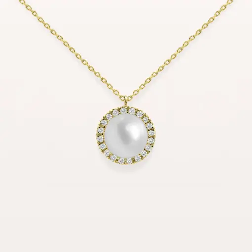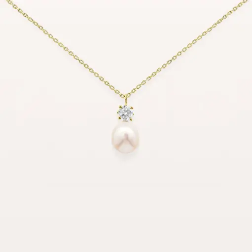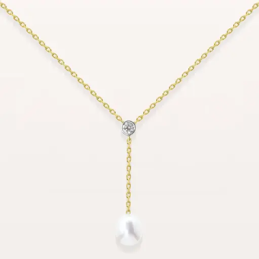 Collier pendentif en or avec perle ovale et diamant étoilé